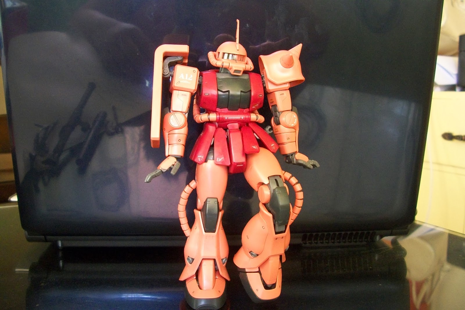 So.....my Char Zaku is done! Finally, yeah? I had to sneak in a "me" time one Sunday afternoon - just so I can panel line and do some easy pose shots.. hehehe I had fun, to say the least. I did everything while my Mom's in the background working on her laptop. teehee